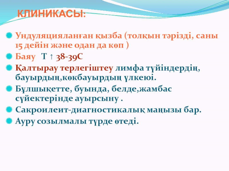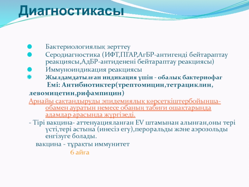 тетрациклин ж.б.), жалпы симптоматикалық ем – шаралар.