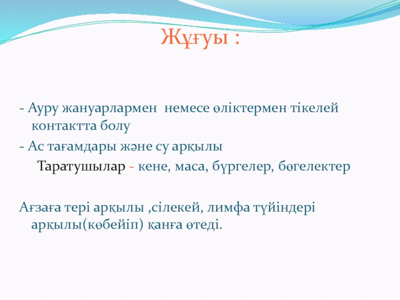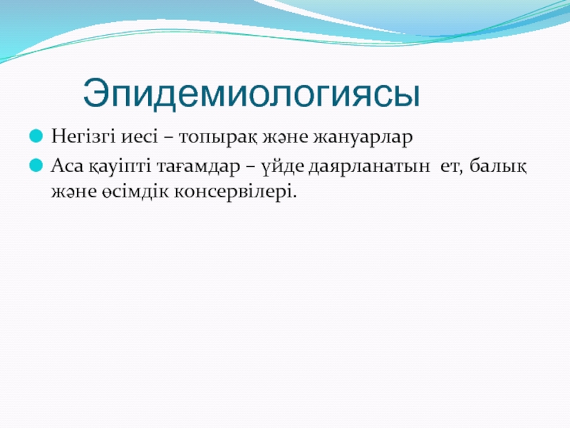 Жұғу жолдары – жарақат арқылы (ботулизм - алименитарлы).