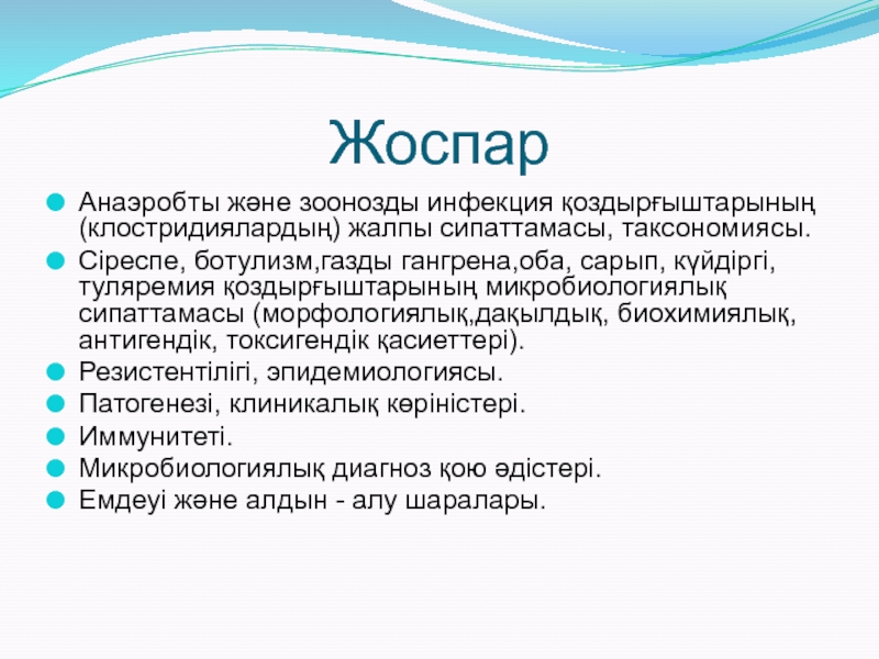 Слайд 1 Патогенді анаэробты және зоонозды инфекциялардың микробиологиялық диагностикасының жалпы принциптері(сіреспе,