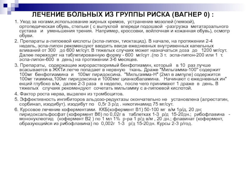 Слайд 18ЛЕЧЕНИЕ БОЛЬНЫХ ИЗ ГРУППЫ РИСКА (ВАГНЕР 0) :