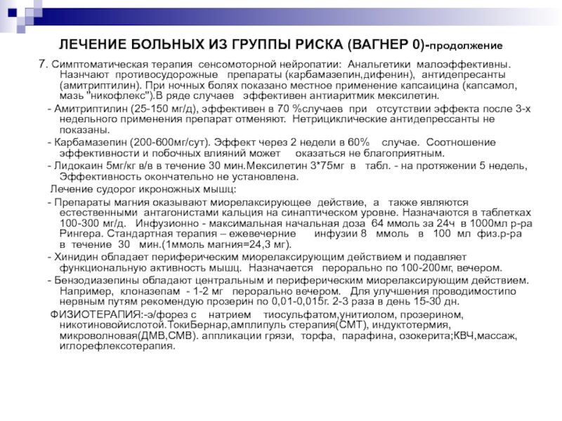 Слайд 19ЛЕЧЕНИЕ БОЛЬНЫХ ИЗ ГРУППЫ РИСКА (ВАГНЕР 0)-продолжение