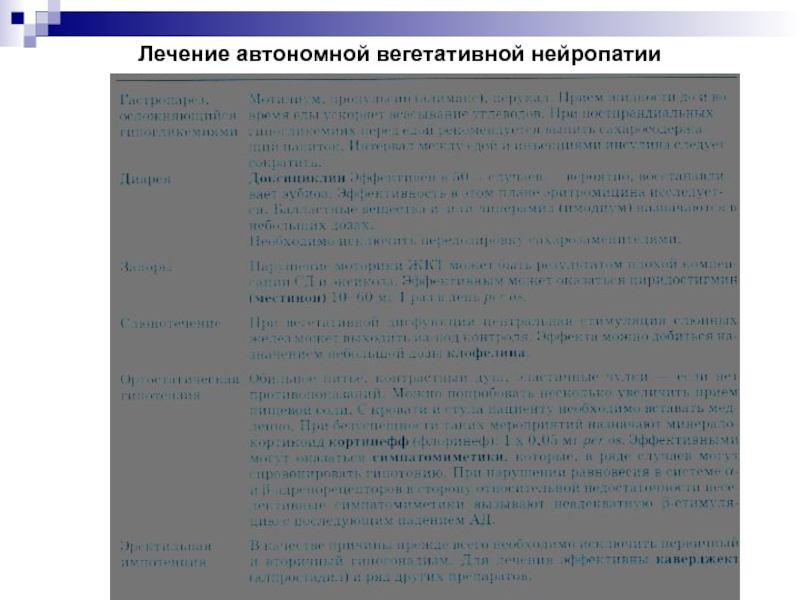 нейропатии: Анальгетики малоэффективны. Назнчают противосудорожные препараты (карбамазепин,дифенин), антидепресанты (амитриптилин).