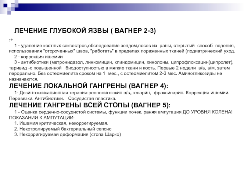 Слайд 21ЛЕЧЕНИЕ ГЛУБОКОЙ ЯЗВЫ ( ВАГНЕР 2-3)