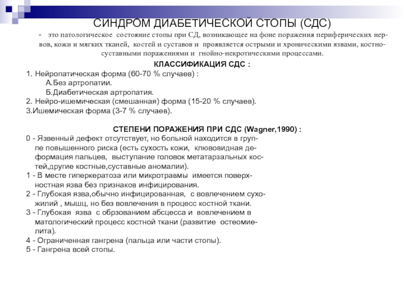 Слайд 14СИНДРОМ ДИАБЕТИЧЕСКОЙ СТОПЫ (СДС)