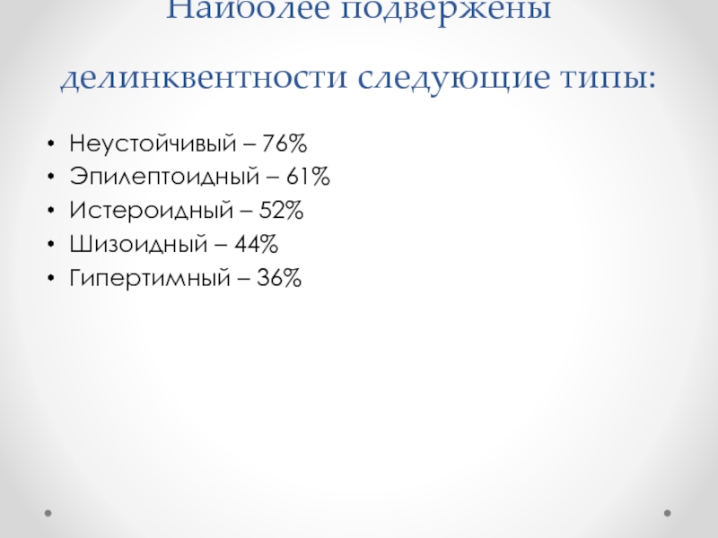 Слайд 6Наиболее подвержены делинквентности следующие типы: