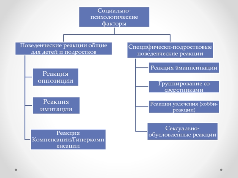 Специфически–подростковые реакции: реакция эмансипации (сопряжена с желанием немедленного удовольствия); хобби-реакции в форме азартных игр.