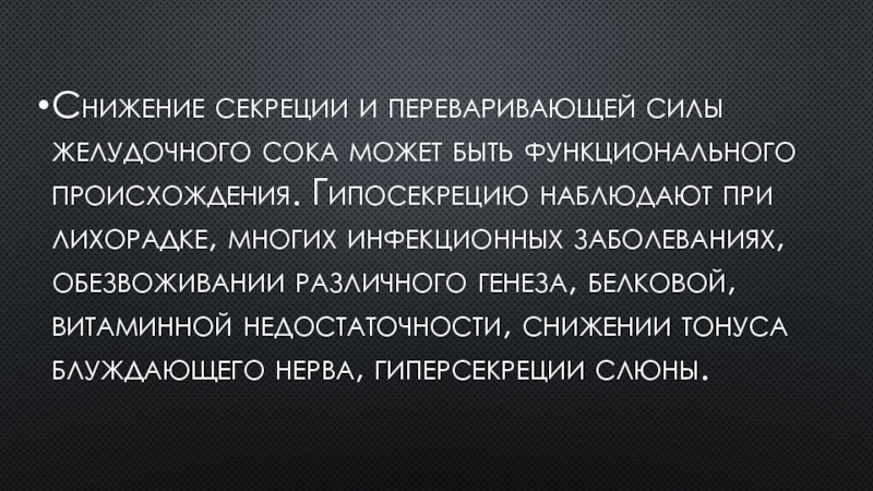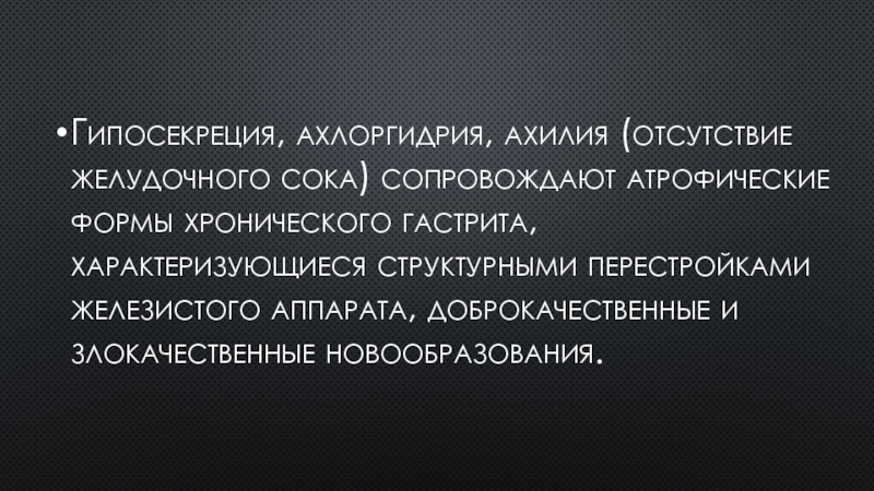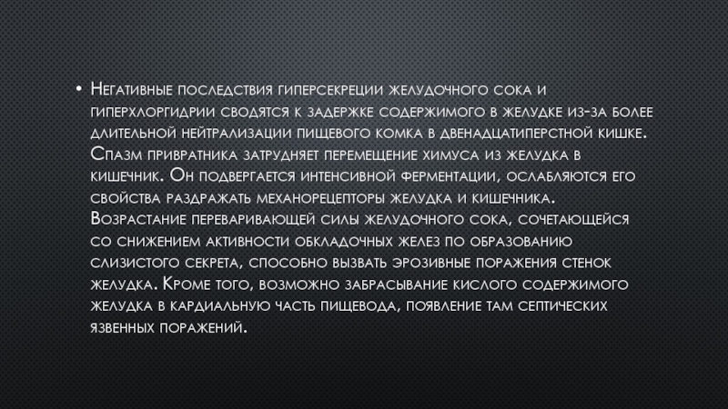 Слайд 30Негативные последствия гиперсекреции желудочного сока и гиперхлоргидрии сводятся к задержке