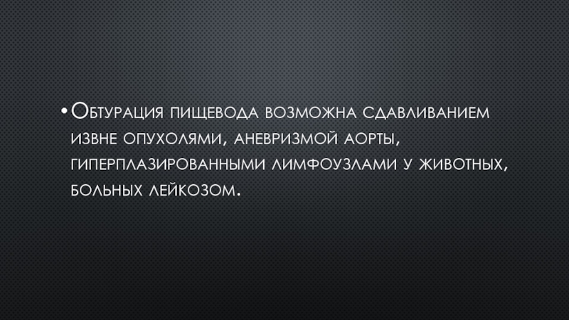 Слайд 23Обтурация пищевода возможна сдавливанием извне опухолями, аневризмой аорты, гиперплазированными лимфоузлами
