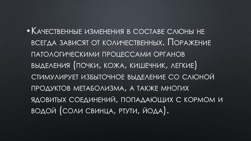 Слайд 20Качественные изменения в составе слюны не всегда зависят от количественных.