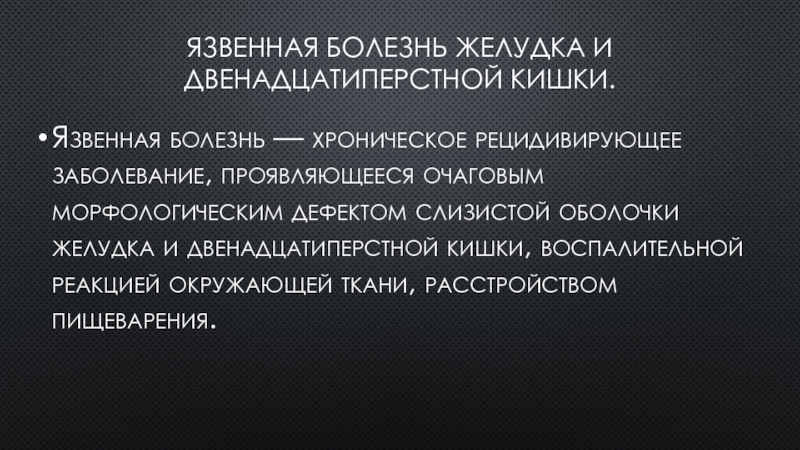 Слайд 39Язвенная болезнь желудка и двенадцатиперстной кишки.