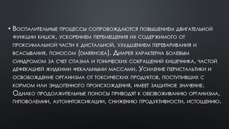 Слайд 53Воспалительные процессы сопровождаются повышением двигательной функции кишок, ускорением перемещения их