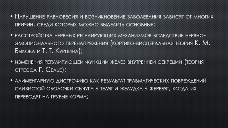 Слайд 44Нарушение равновесия и возникновение заболевания зависят от многих причин, среди