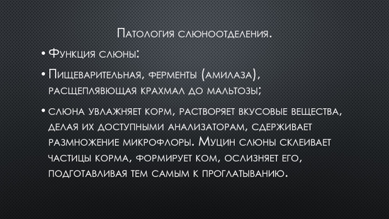 слюна увлажняет корм, растворяет вкусовые вещества, делая их доступными анализаторам,