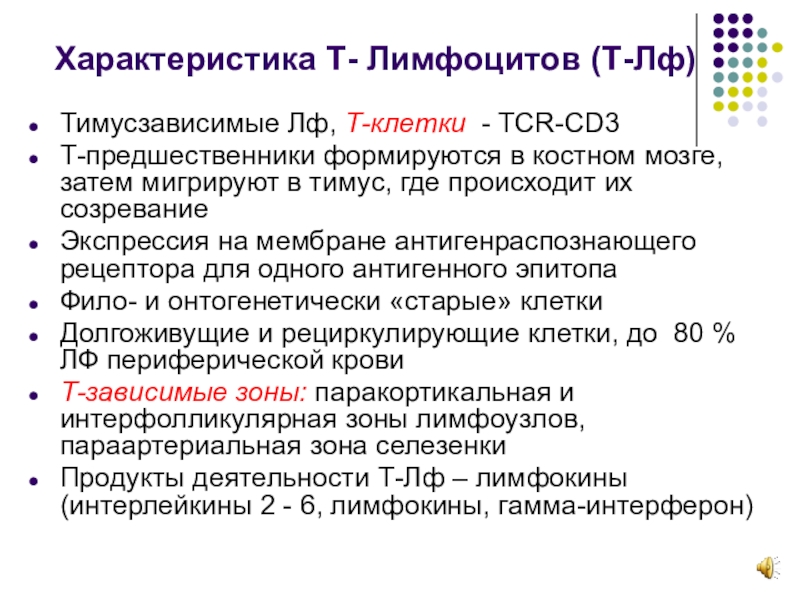 Слайд 18Характеристика Т- Лимфоцитов (Т-Лф)