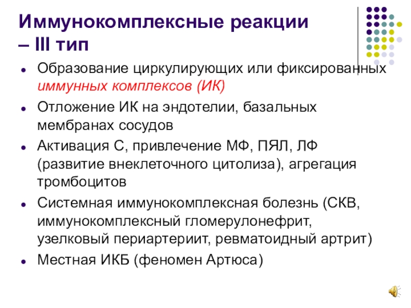 Тип III. Гиперчувствительность иммунокомплексного типа