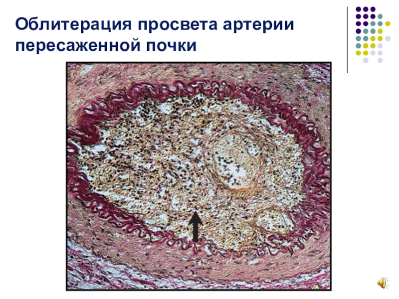 Слайд 57Облитерация просвета артерии пересаженной почки