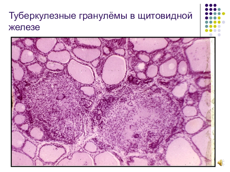 Слайд 55Туберкулезные гранулёмы в щитовидной железе