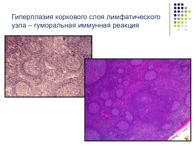 Слайд 30Гиперплазия коркового слоя лимфатического узла – гуморальная иммунная реакция