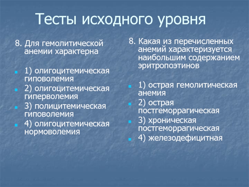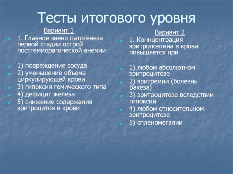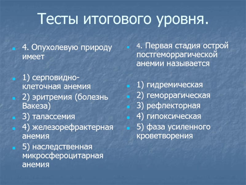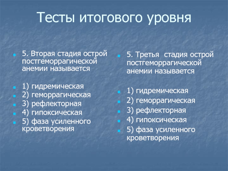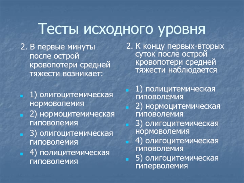 2. К концу первых-вторых суток после острой кровопотери средней тяжести наблюдается