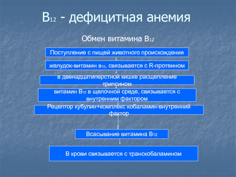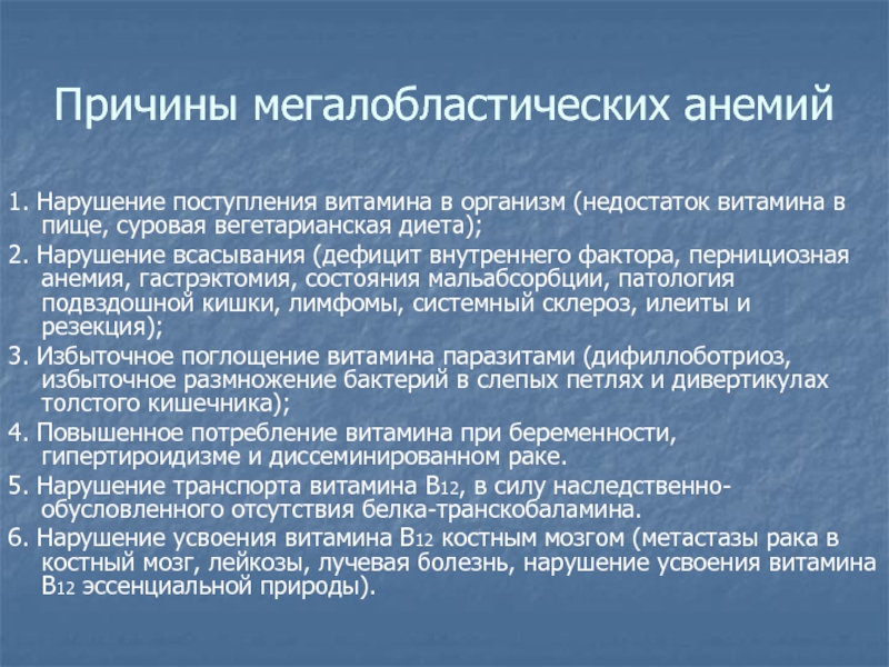 - В12 и фолиеводефицитные анемии. Этиология, патогенез, гематологический синдром.