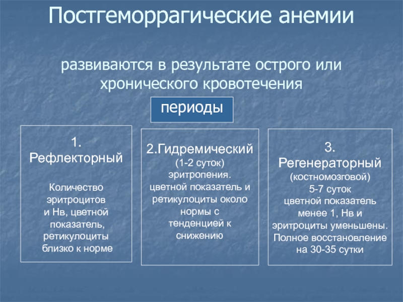 3. Постгеморрагические анемии. Этиология, патогенез, гематологический синдром.