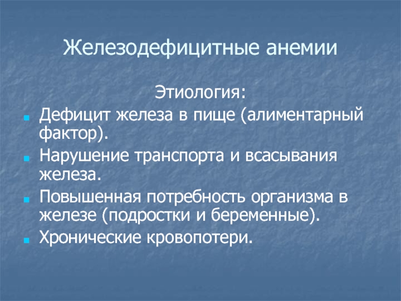 - Железодефицитные анемии. Этиология, патогенез, гематологический синдром.