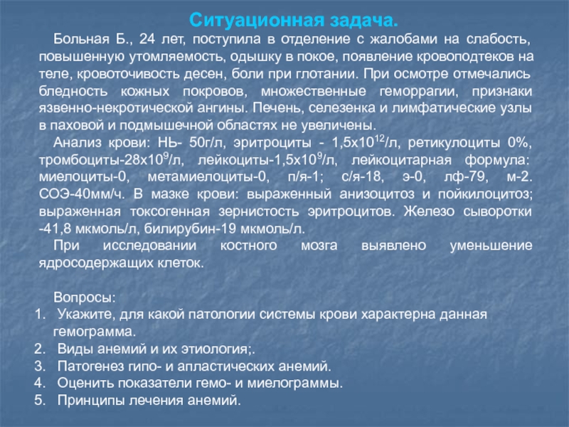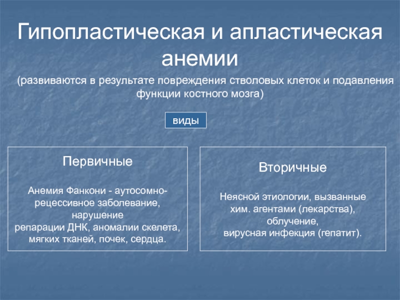 - Апластические анемии. Этиология Этиология, патогенез. Наследственные и приобретенные гемолитические анемии.