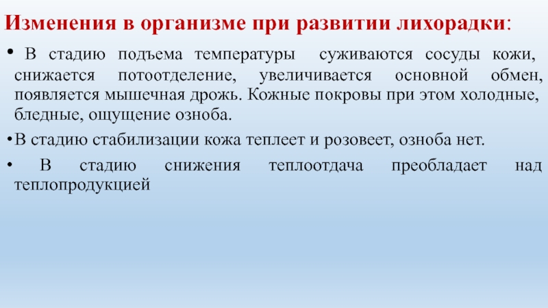 Слайд 11В системах и органах при лихорадке возникает ряд изменений: