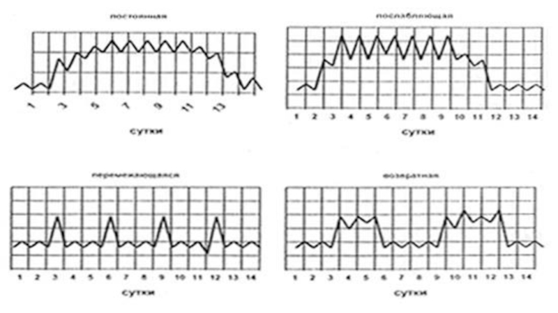 Изнуряющая лихорадка - разница утренней и вечерней температуры в диапазоне 2 - 3 С