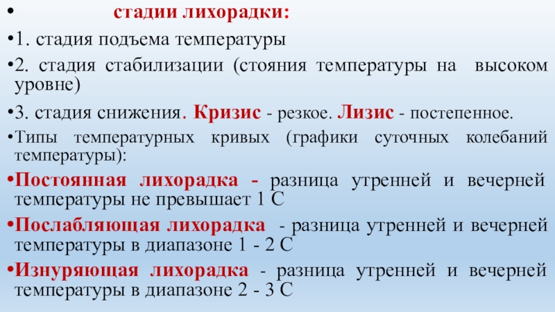 Изнуряющая лихорадка - разница утренней и вечерней температуры в диапазоне 2 - 3 С