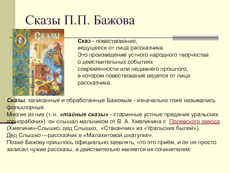 В 1939 в "Сведлгизе" вышел первый сборник сказов "Малахитовая шкатулка».
