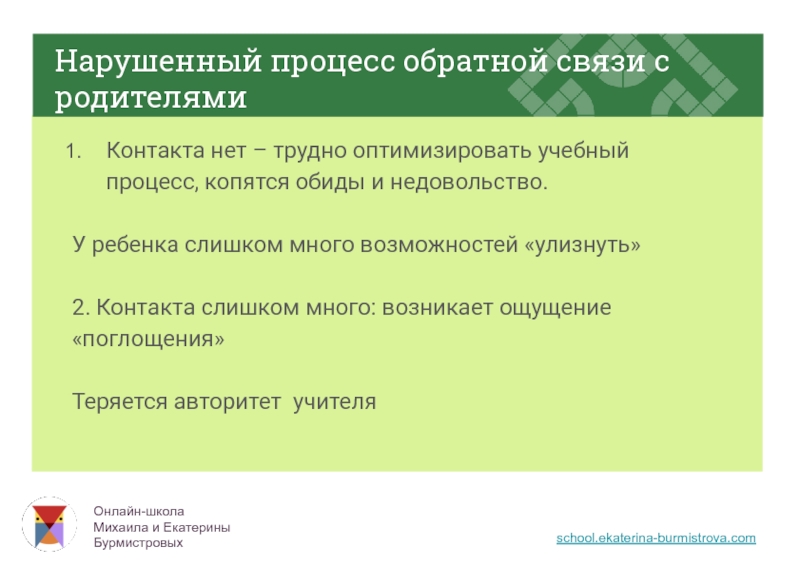 Слайд 18Нарушенный процесс обратной связи с родителями
