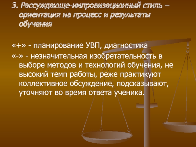 Слайд 83. Рассуждающе-импровизационный стиль – ориентация на процесс и результаты обучения