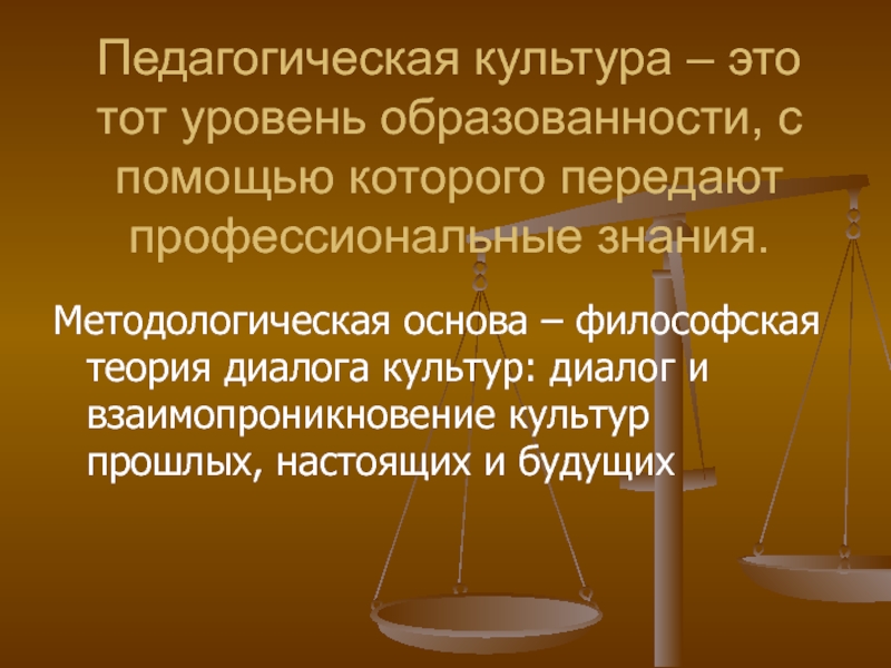 Слайд 19Педагогическая культура – это тот уровень образованности, с помощью которого