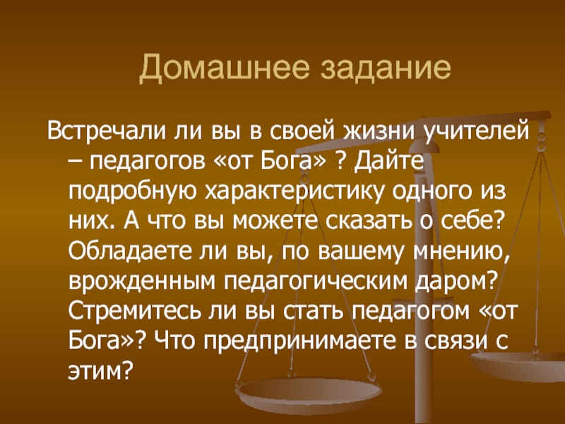 что вы можете сказать о себе? Обладаете ли вы, по вашему мнению, врожденным педагогическим даром? Стремитесь ли вы стать педагогом «от Бога»? Что предпринимаете в связи с этим?