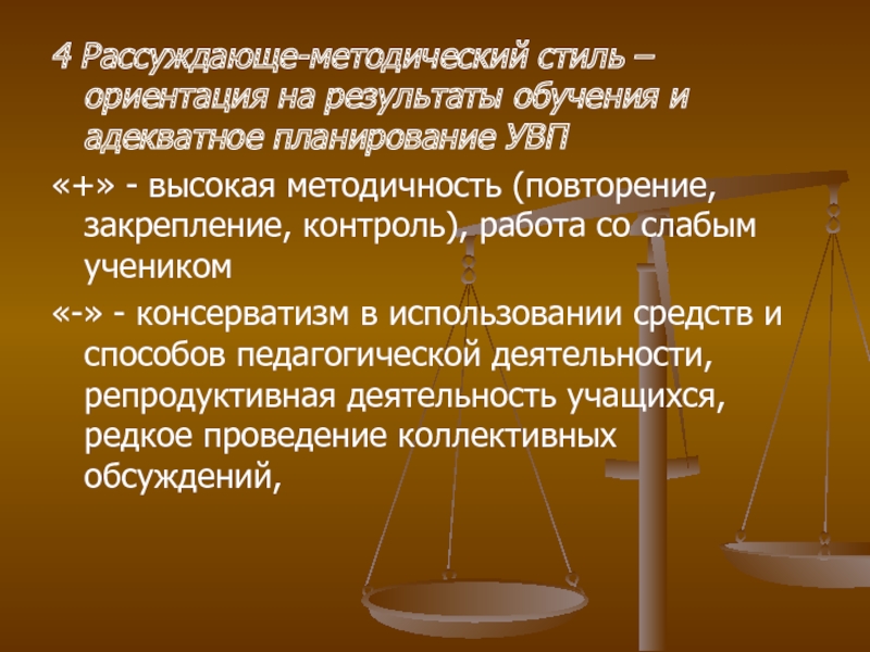 Слайд 94 Рассуждающе-методический стиль – ориентация на результаты обучения и адекватное