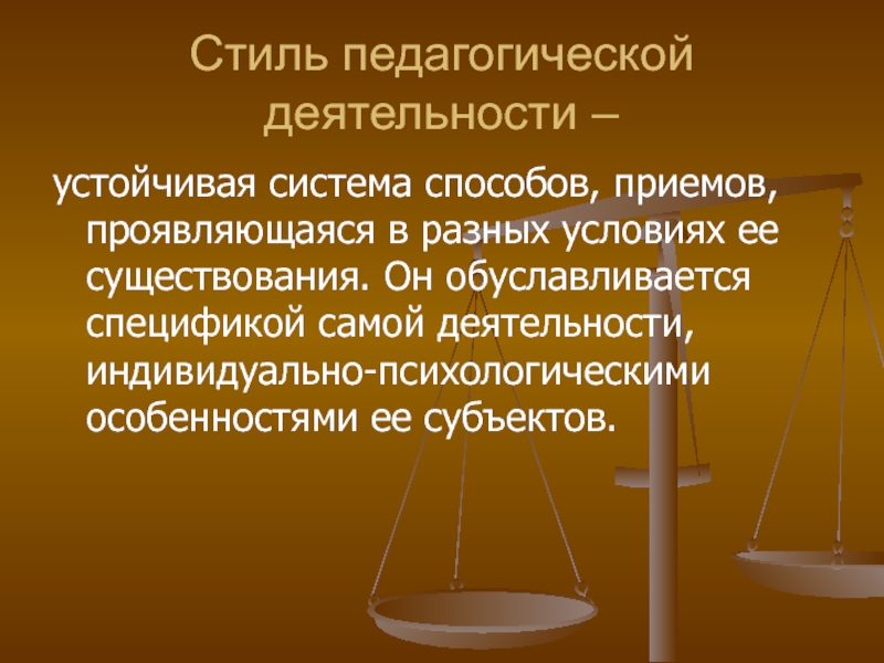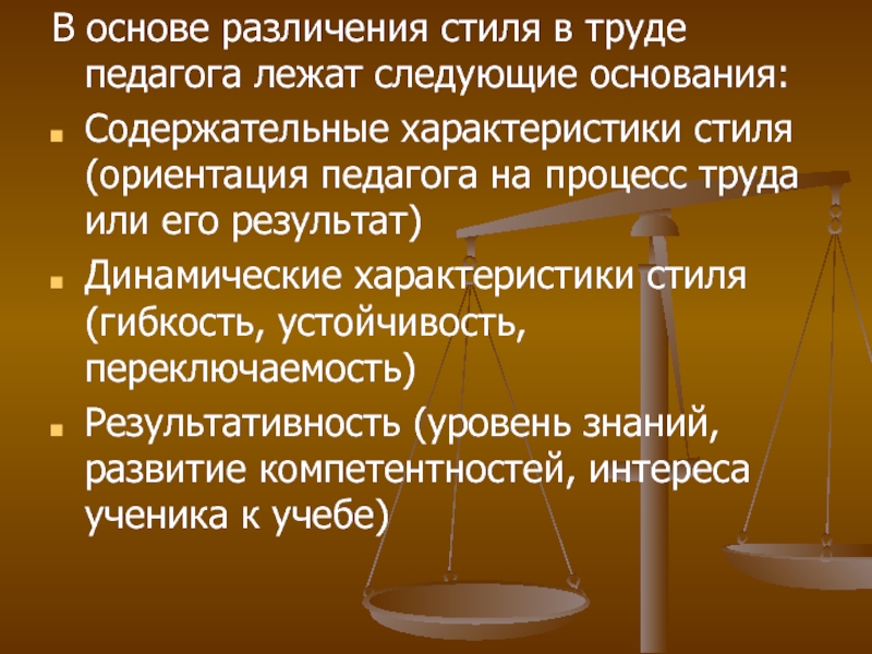 Слайд 5В основе различения стиля в труде педагога лежат следующие основания: