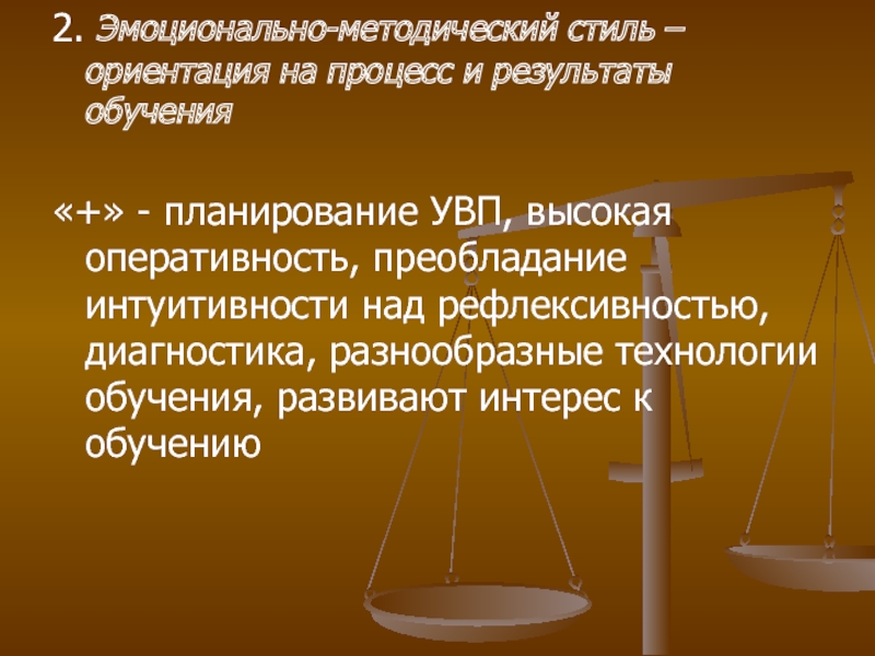 Слайд 72. Эмоционально-методический стиль – ориентация на процесс и результаты обучения