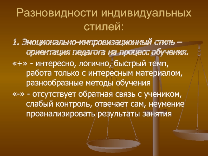 1. Эмоционально-импровизационный стиль – ориентация педагога на процесс