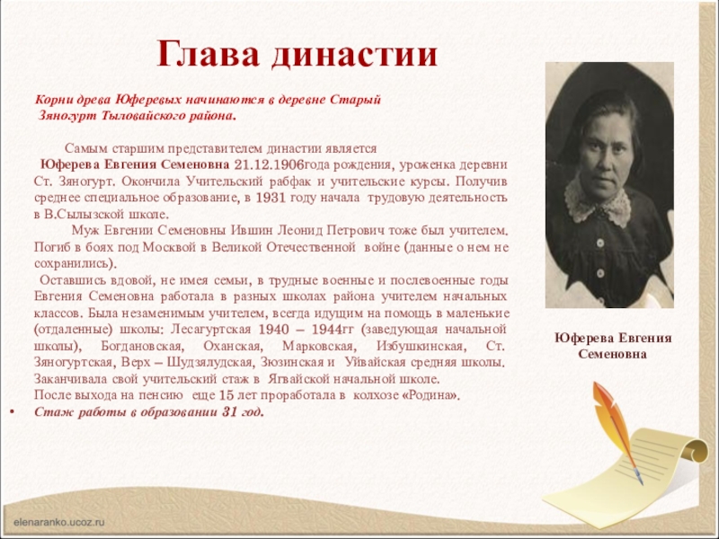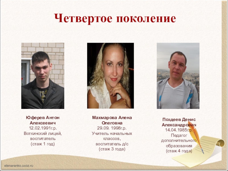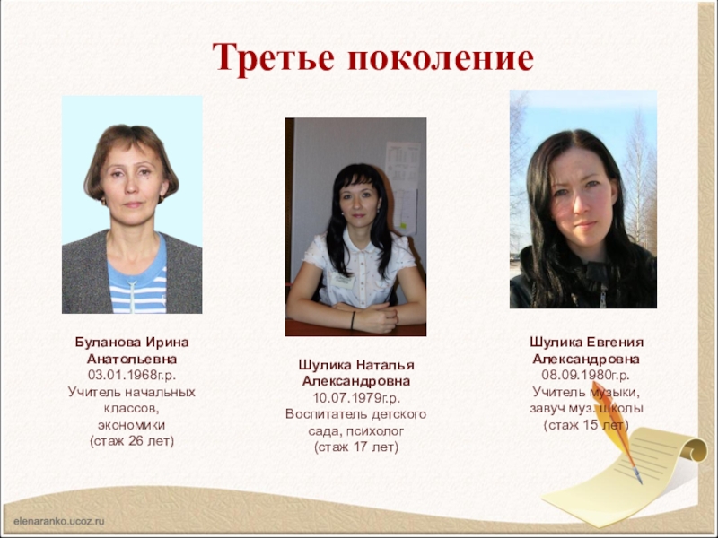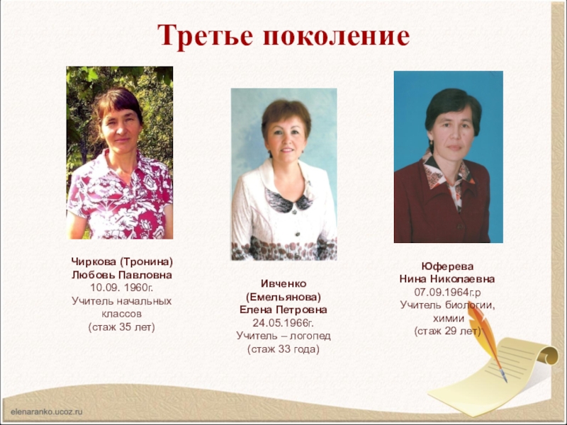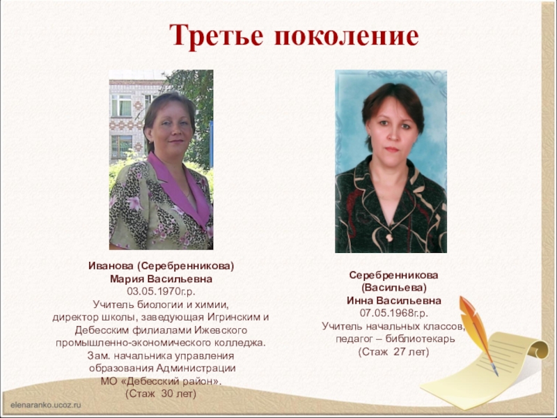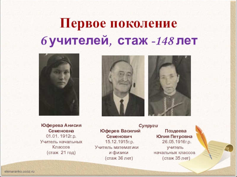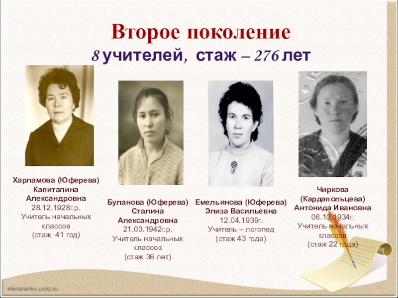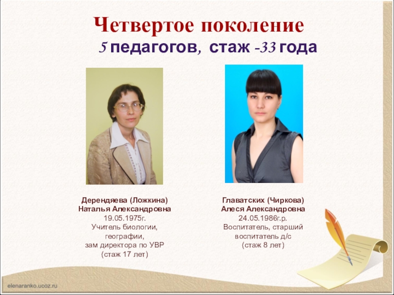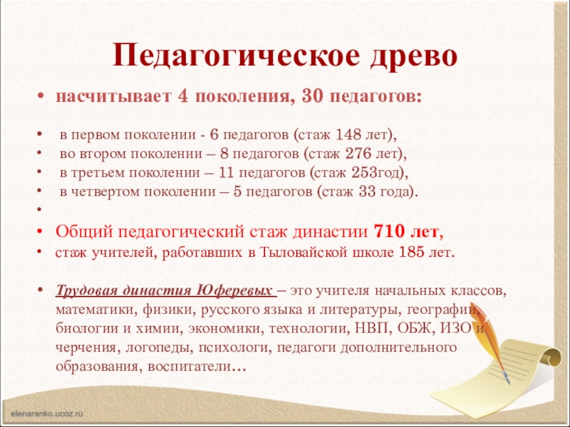 в четвертом поколении – 5 педагогов (стаж 33 года).