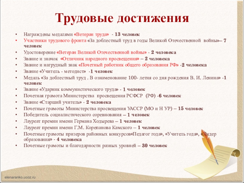 стаж учителей, работавших в Тыловайской школе 185 лет.