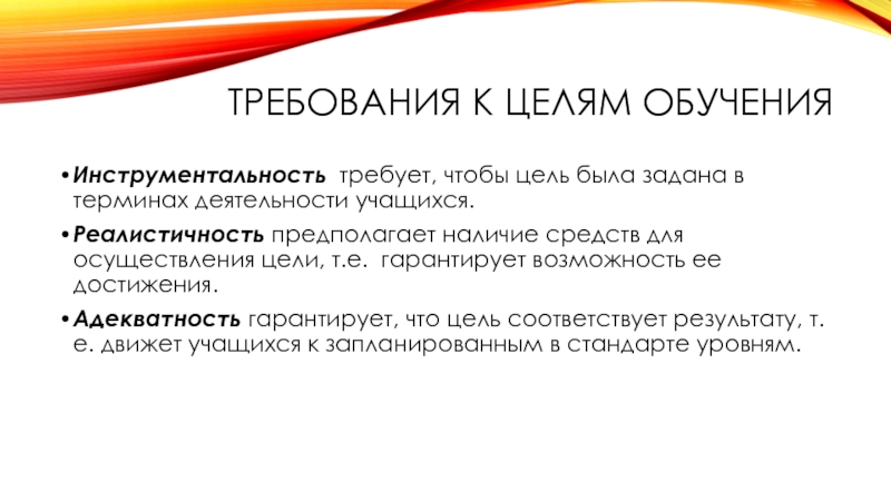 Адекватность гарантирует, что цель соответствует результату, т.е. движет учащихся к запланированным в стандарте уровням.