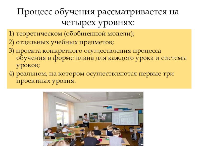 Слайд 9Процесс обучения рассматривается на четырех уровнях: