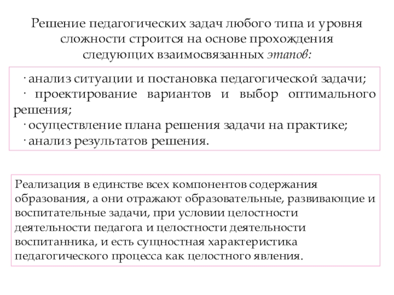 Слайд 13Решение педагогических задач любого типа и уровня сложности строится на