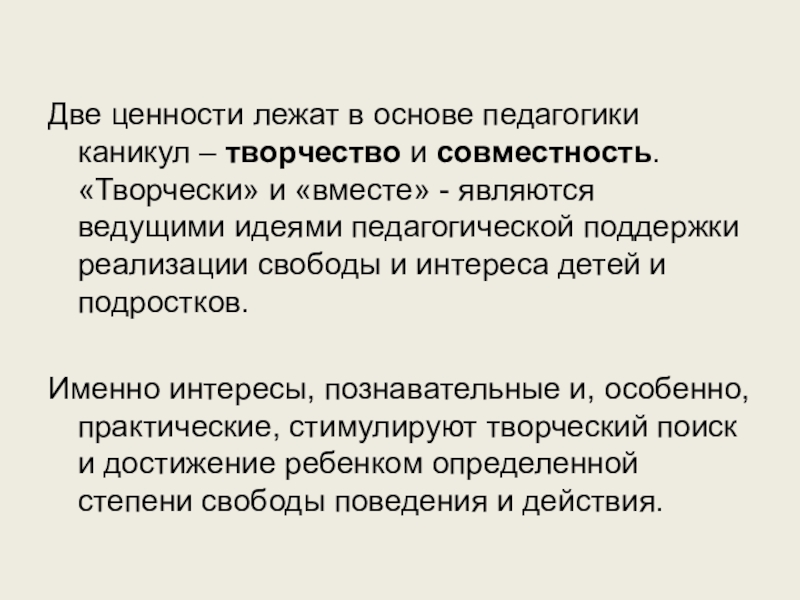 Две ценности лежат в основе педагогики каникул – творчество и