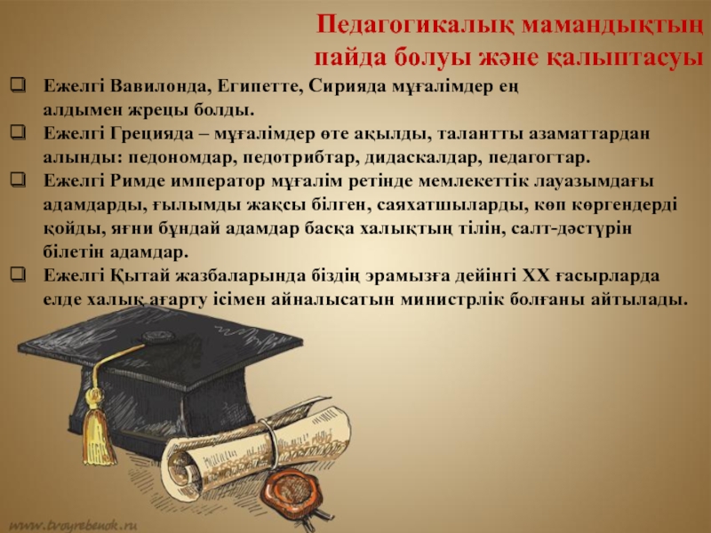 Педагогикалық мамандықтың пайда болуы және қалыптасуы