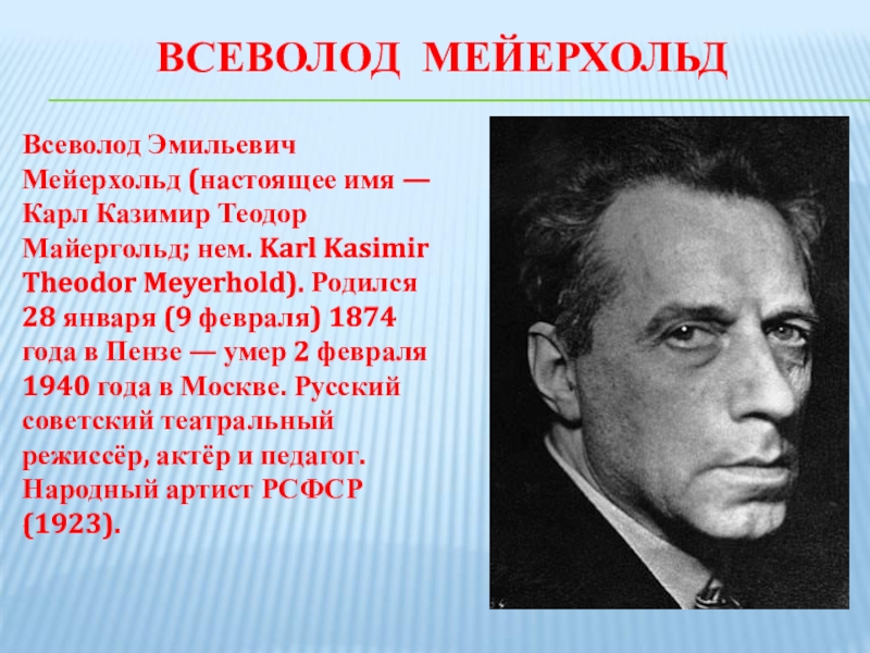 Всеволод Эмильевич Мейерхольд (настоящее имя — Карл Казимир Теодор