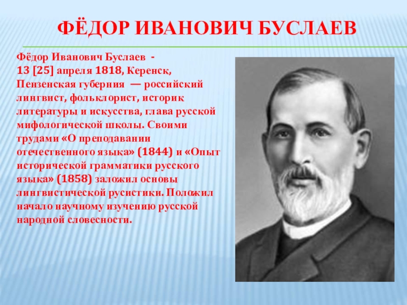Фёдор Иванович Буслаев - 13 [25] апреля 1818, Керенск, Пензенская губерния —