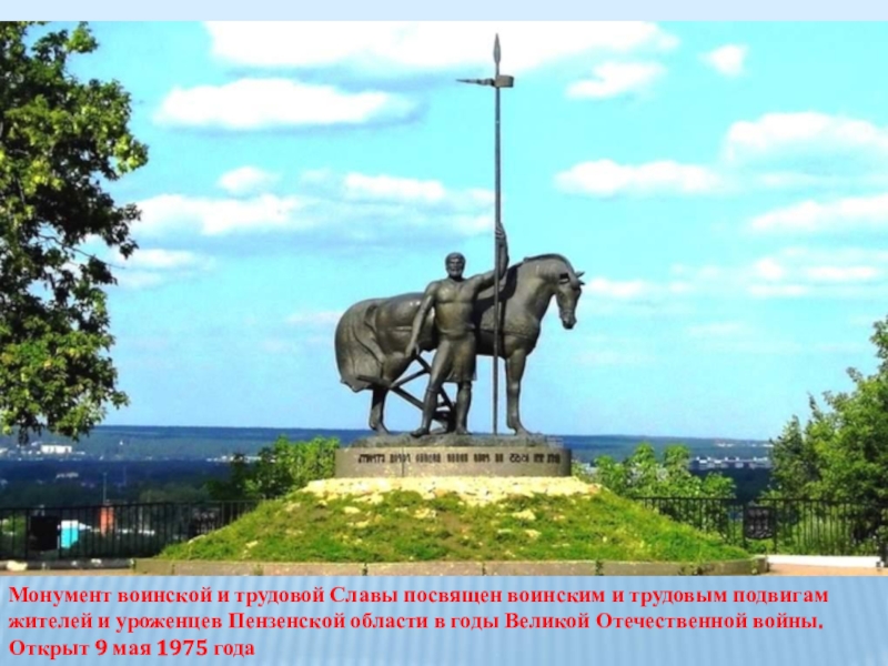 Слайд 16Монумент воинской и трудовой Славы посвящен воинским и трудовым подвигам