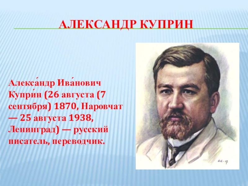 Алекса́ндр Ива́нович Купри́н (26 августа (7 сентября) 1870, Наровчат